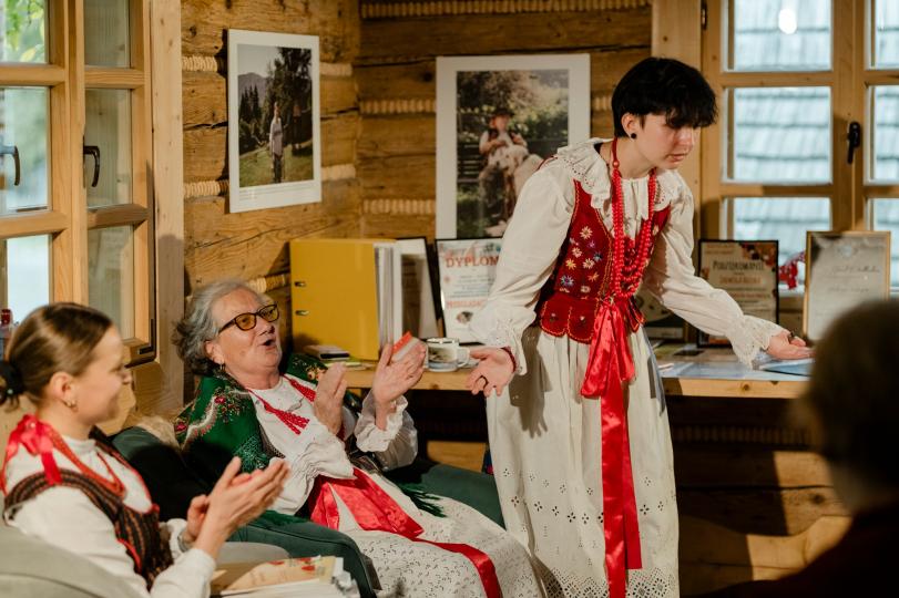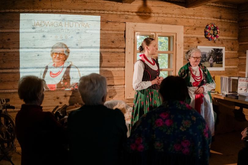 Prezentujemy zdjęcia z wieczoru autorskiego, który odbył się w osadzie Sopki Stopki w Cięcinie (sopkistopki.pl) z panią Jadwigą Hutyrą – góralką, która pielęgnuje tradycje beskidzkie, a swoje pasje wyraża w wierszach i gawędach pisanych gwarą góralską.