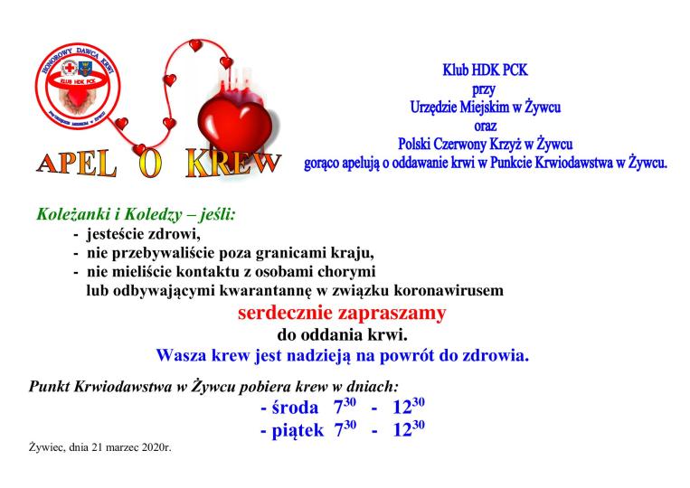 Punkt Krwiodawstwa w Żywcu: Brakuje krwi, liczymy na Was! Opublikowano niedziela, 22 03 2020 Utworzono: niedziela, 22 03 2020 Udostępnij Drukuj E-mail Poprzedni artykuł Następny artykuł