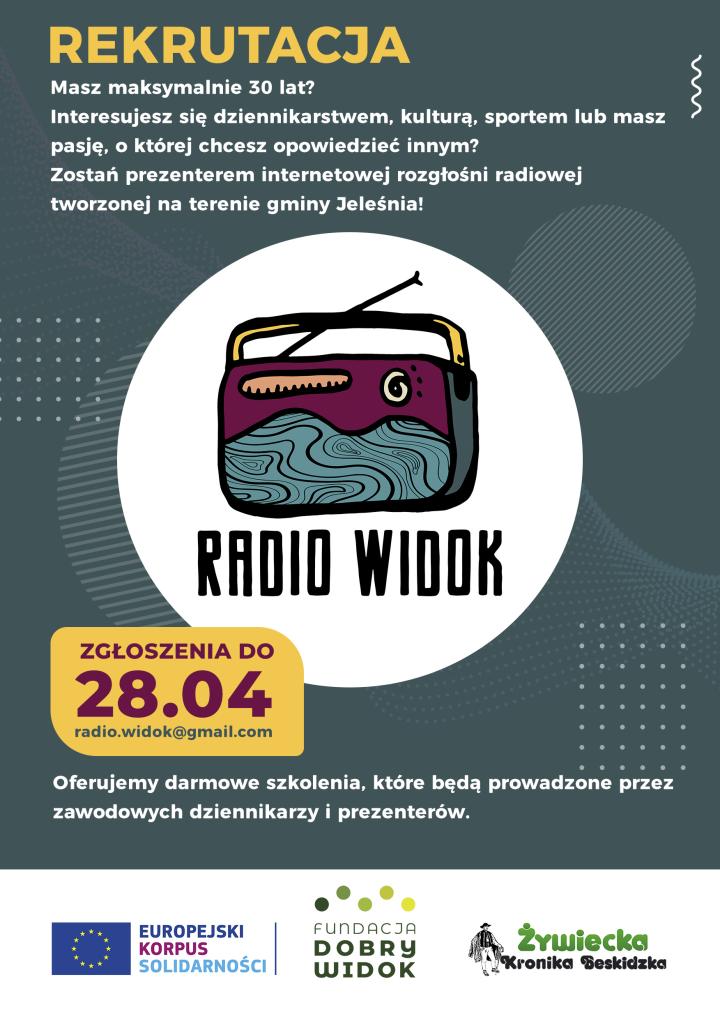 Na terenie gminy Jeleśnia powstaje społeczna, internetowa rozgłośnia radiowa o nazwie „Radio Widok”. Młodzi ludzie będą prowadzili audycje o tematyce kulturalnej, sportowej, a także opowiadali o swoich pasjach i nagrywali słuchowiska. Dodatkowo w ramach projektu realizowanego przez Fundację Dobry Widok odbędą się darmowe szkolenia z zawodowymi dziennikarzami i prezenterami. Przewidziane są również warsztaty z dykcji.