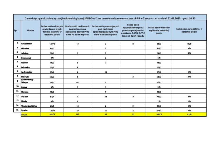 Aktualna sytuacja epidemiologiczna na Żywiecczyźnie [22.09.2020] Opublikowano wtorek, 22 09 2020 Utworzono: wtorek, 22 09 2020 źródło: psse.zywiec.pl Udostępnij Drukuj E-mail Poprzedni artykuł Następny artykuł