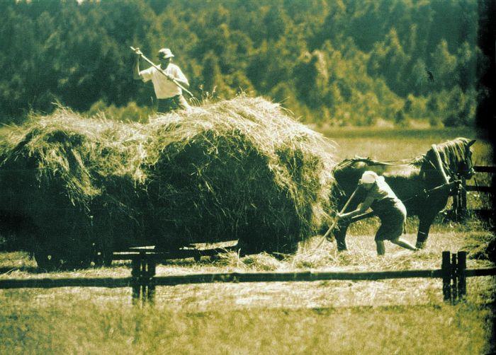 Byli na polanak po kiela nie pokosili i posusyli skosonego siana. Po tym zwozili siano furmani końmi. Było to bardzo trudne zajyńci, koń musioł być leki i bardzo zwinny.