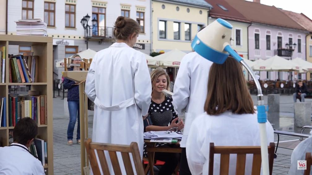 Książka na receptę? Na żywieckim Rynku pojawili się niezwykli lekarze, którzy zamiast leków polecali... książki. Festiwal Żywiec Miasto ZmySŁÓW z Witkacym w tle rozpoczęty.