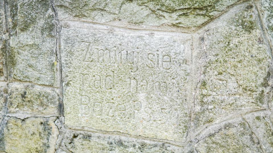 W pomnik wmurowano kamienie z napisami: