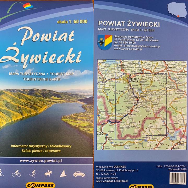 W ramach swoich kompetencji w roku 2020 Wydział Turystyki, Kultury, Sportu i Promocji Powiatu Starostwa Powiatowego w Żywcu wydał aktualną mapę turystyczną Powiatu Żywieckiego w skali 1:60 000.