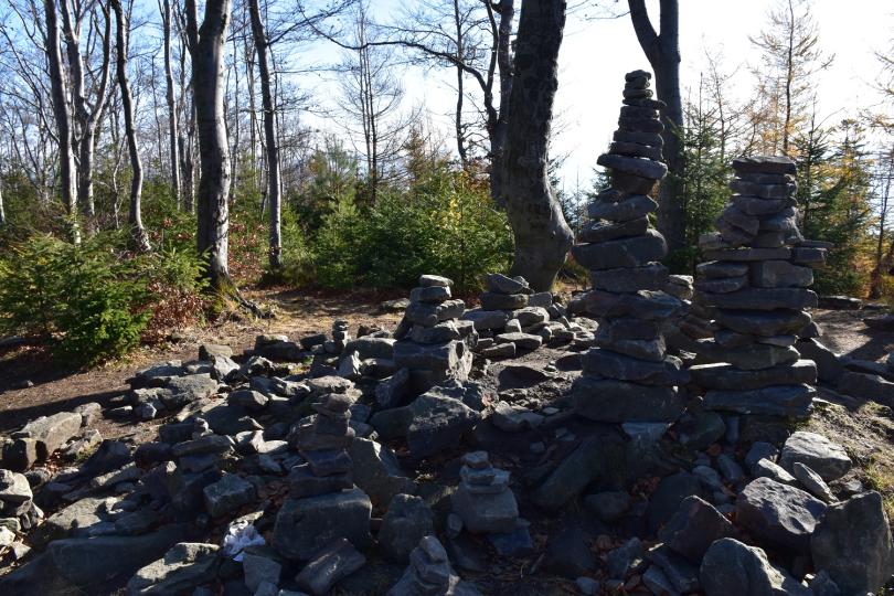 Idziemy dalej szlakiem czerwonym. Większość drzew bukowych zrzuciło już liście. Idziemy po kostki w liściach. Przepięknie. Nawet prawdziwka znaleźliśmy jeszcze. Docieramy pod Diabli Kamień.