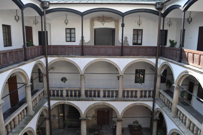 Z zewnątrz zamek jest niepozorny. I nic nie zapowiada tego, co czeka nas w środku. Na pierwszy rzut oka niesamowite wrażenie sprawia arkadowy dziedziniec. Kwadratowy plac otoczony jest z czterech stron trzema poziomami kolumn. Stary Zamek jest udostępniony dla zwiedzających. Wstęp na tereny przyzamkowe jest bezpłatny, natomiast do sal i ekspozycji - płatny. Zwiedzać można kilka sal na parterze, z wejściem od pięknego dziedzińca. Obok wspomnianej sali tortur można oglądać również ekspozycje stałe - w tym wystawę etnograficzną. Klimat dziedzińca jest niepowtarzalny. Arkady i krużganki do złudzenia przypominają Wawel. Do tej koncepcji skłania się wielu historyków ze zgodną tezą, iż budowa dziedzińca zamku była wzorowana na Wawelu.